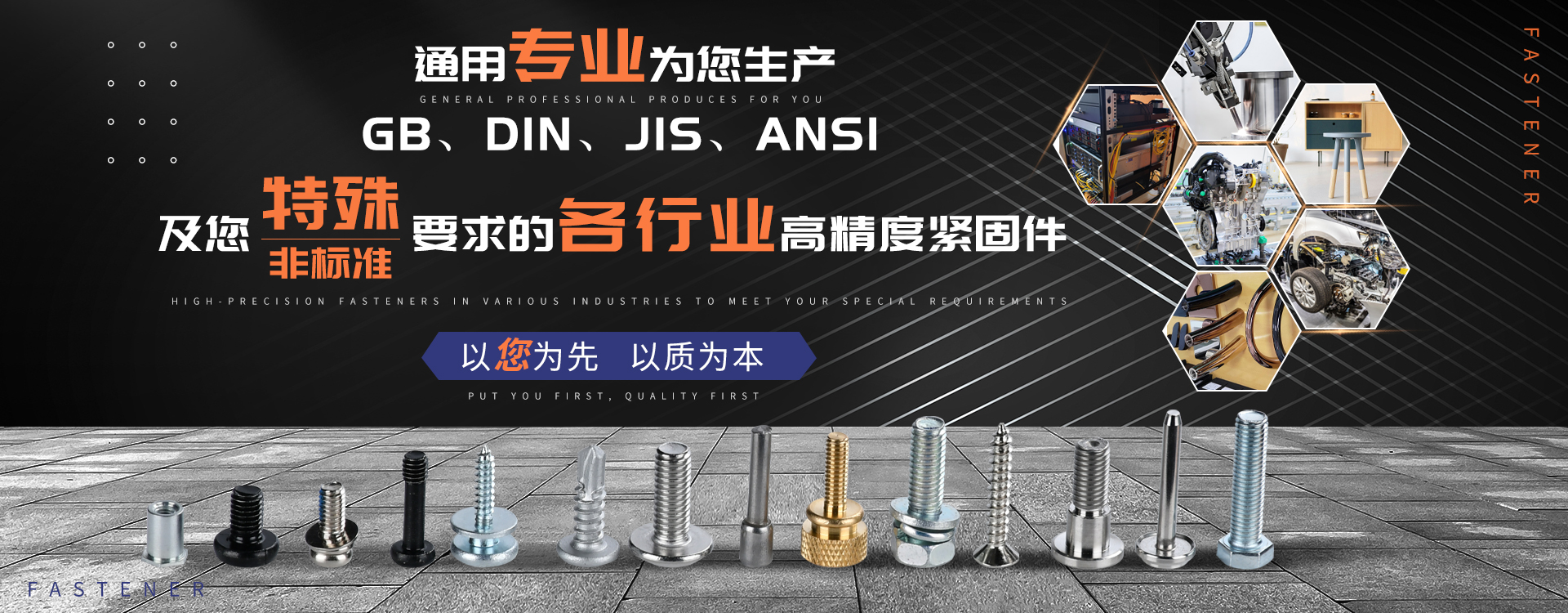中山市通用螺絲制造有限公司成立于1987年,工廠坐落于廣東四小虎之一的中山市,北連廣州,毗鄰港澳??傉嫉孛娣e14000m 2,足有兩個足球場。1998年通過德國萊茵TUV ISO9002認證,于2002年通過TUV ISO9001:2000認證。2008年通過ISO 14000認證。我司主營自攻螺絲組合螺絲、機械螺絲防松螺絲等標準和非標準件既可按客戶的要求提交所需的產品,也可為客戶量身定做所需產品。我司擁有專業的產品檢測隊伍和投影分析儀、金相、硬度計(韋氏和洛氏)、扭矩力測試計等完善的檢測設備,為電子、電器、五金塑料、衛浴、家具、機械、汽配等行業提供符合歐盟質量、環保要求的產品。2006年,我司自主開發的ERP管理系統,使我們的生產和服務效率得到了極大的提高 經過三十多年地摸爬滾打,依靠眾多新老顧客的支持,通用螺絲逐漸成長為國內知名的緊固件供應商。了解更多 >>